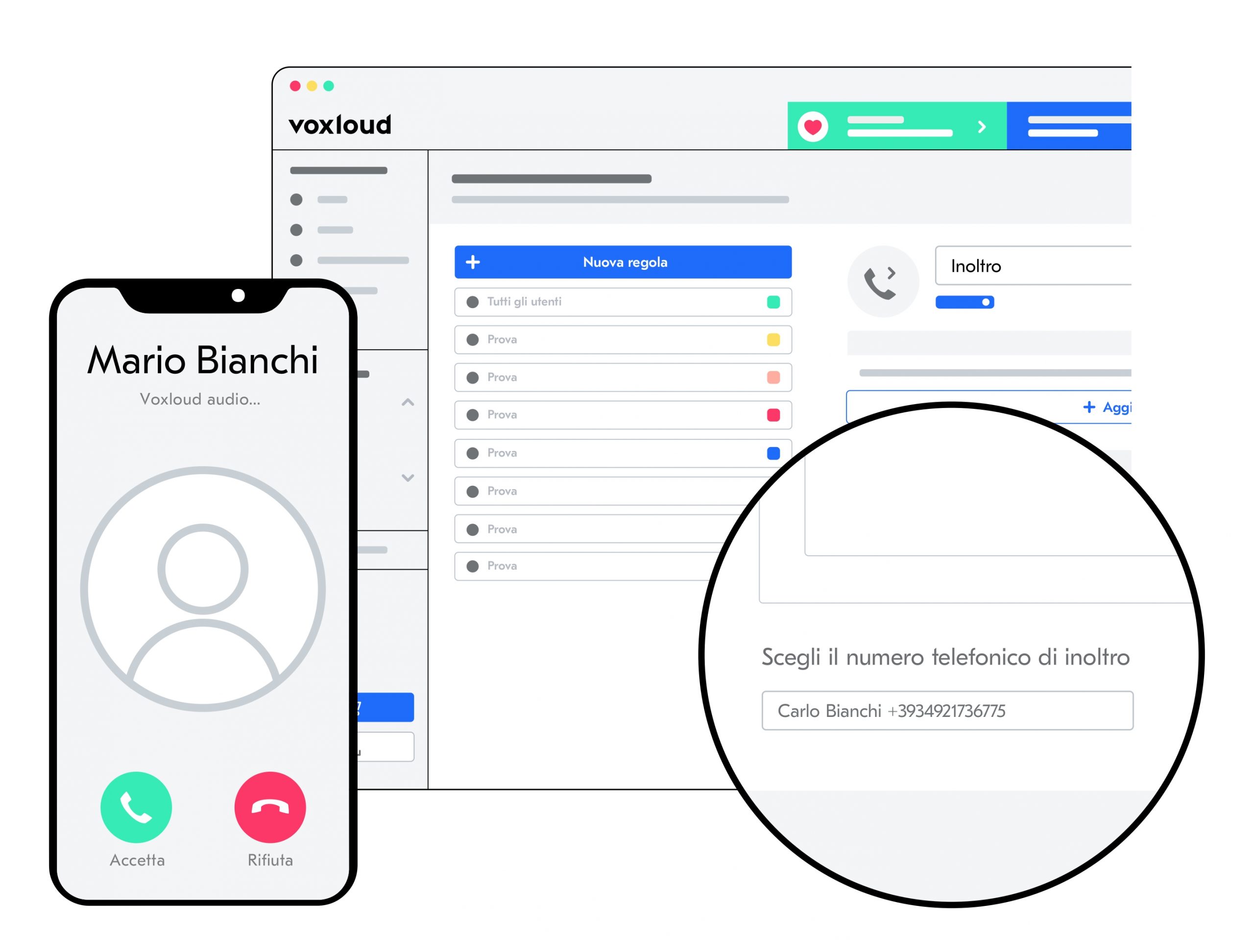 Con Voxloud puoi scegliere di inoltrare le chiamate in entrata a un telefono fisso o cellulare a tua scelta.