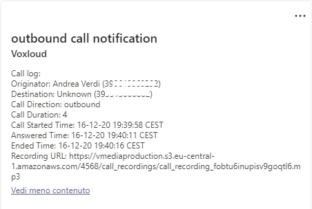 Ciò significa che ti basterà scegliere un canale di Microsoft Teams, e far arrivare lì tutte le informazioni delle chiamate di Voxloud. Così avrai tutto sempre sotto controllo, in tempo reale.