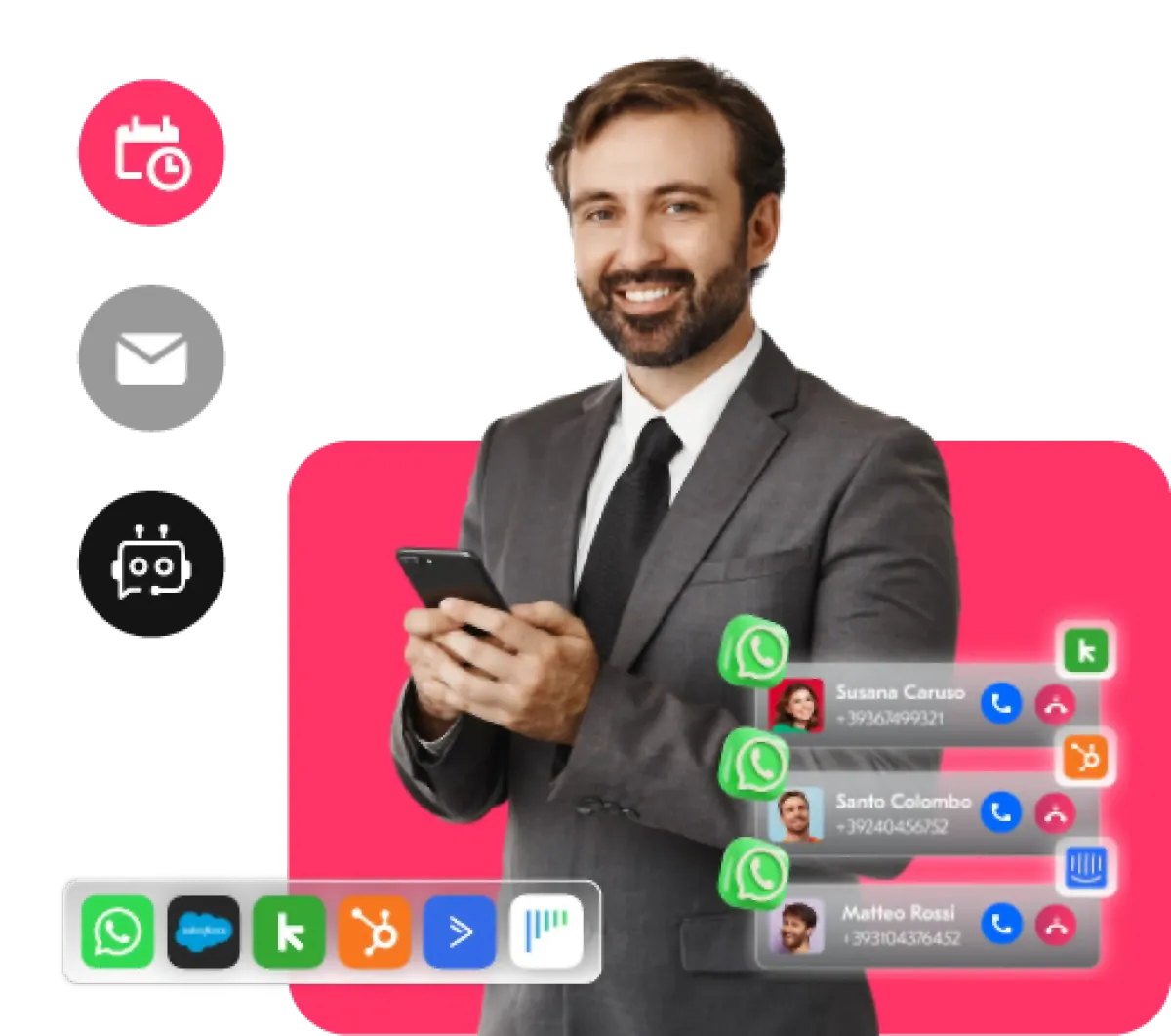 Con le Robocall (chiamate automatiche) e i WhatsApp automatizzati: richiami e parli in secondi, non giorni, con i tuoi nuovi clienti potenziali.